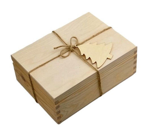 Zestaw zapakowany jest w naturalnym drewnianym pudełku