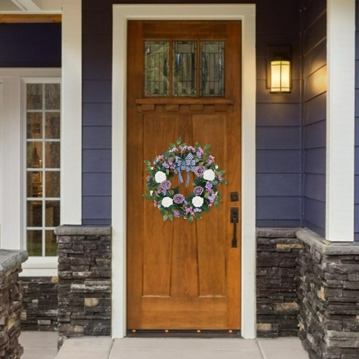 Sztuczne zielone liście i wieniec z róż, bardzo realistyczne i nie wymagają specjalnego czyszczenia ani konserwacji. Łatwy do przechowywania i wielokrotnego użytku. Może być stosowany wewnątrz i na zewnątrz.