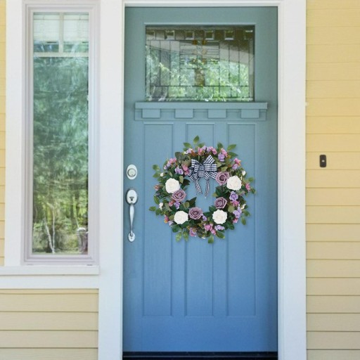 Wieniec z róż, z ożywczą różą i . Wiszące w widoczny sposób na drzwiach wejściowych sprawią, że Twój gość poczuje powiew wiosennego romantyzmu.