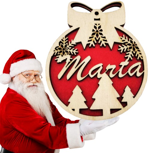 BOMBKA PERSONALIZOWANA Z IMIENIEM DREWNIANA Z TŁEM CHOINKA PREZENT ŚWIĘTA