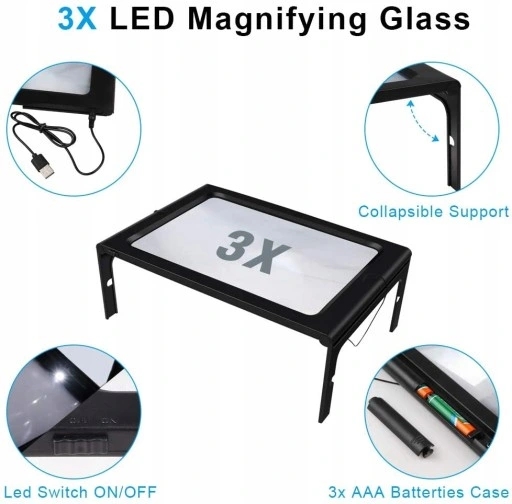 3x podświetlana lupa do czytania jest idealna do czytania gazet, map, książek lub innych drobno drukowanych i szczegółowych materiałów.