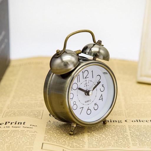 Budzik w stylu retro, z dwoma dzwonkami, naprawdę głośno alarmujący;