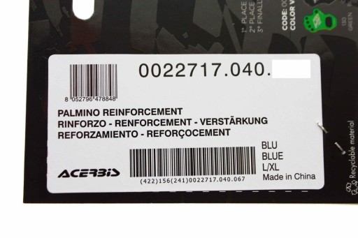 Um den notwendigen Schutz zu schaffen, produziert Acerbis Protektoren für die Hände. Sie werden aus einer dünnen Schutzfolie, die kompletten Schutz der Hand und der Fläche zwischen dem Zeigefinger und dem Daumen bietet. Palm Saver helfen auch die so genannten "Arm Pumps" (Taubheitsgefühl in Unterarmen, wenn der Lenker zu fest gehalten wird) durch Absorption von Schwingungen, die vom Lenkrad kommen, zu reduzieren. Man fühlt sie kaum unter der Handschuhe, man kann aber deutlich die Vibrationsreduzierung feststellen. Die Protektoren eignen sich hervorragend für alle Motorrad- und Quadsfahrer, sowohl für Gelände- als auch für Straßenfahrten.