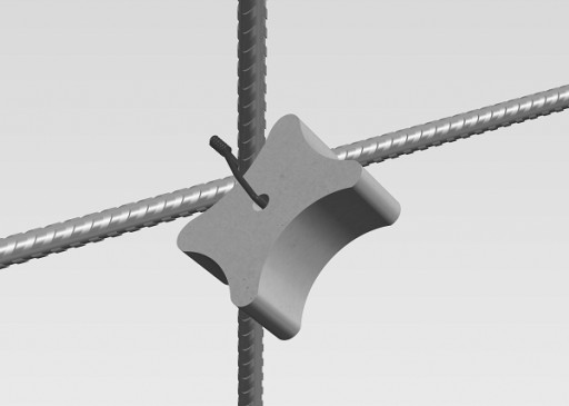 Dystans punktowy do poziomych lub pionowych zbrojeń kość z włóknobetonu profilowana,posiada kilka możliwości otuliny 20 mm 25mm lub 30 mm zależy od ułożenia kości, ma zastosowanie na ławach fundamentowych, płytach żelbetowych , stropach jako dystans pomiędzy dolnym zbrojeniem a chudym betonem, betonem podkładowym , cechuje je duża wytrzymałość. Gwarantuje minimalny kontakt z szalunkiem i doskonały przepływ betonu. Do stosowania w wytwórniach prefabrykatów i bezpośrednio na budowie.Dodatkowo wbudowny drut ułatwia montaż do zbrojenia i zapobiega przesuwaniu się dystansu.