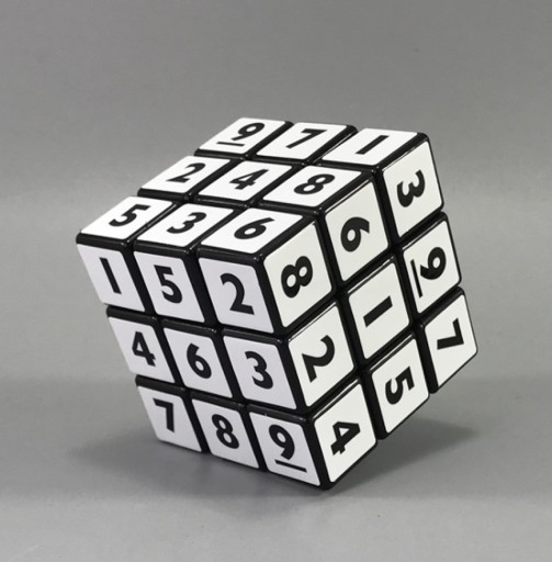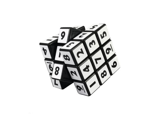 Znane już wyzwanie dla rąk i głowy do rozwiązania z nową białą kostką :) Kostka jest połączeniem dwóch najpopularniejszych łamigłówek wszech czasów. Zasady są bardzo proste, ale wykonanie zadania zajmie Ci długie godziny: na każdej ścianie zamiast kolorowych kwadracików znajdziesz cyferki od 1 do 9.