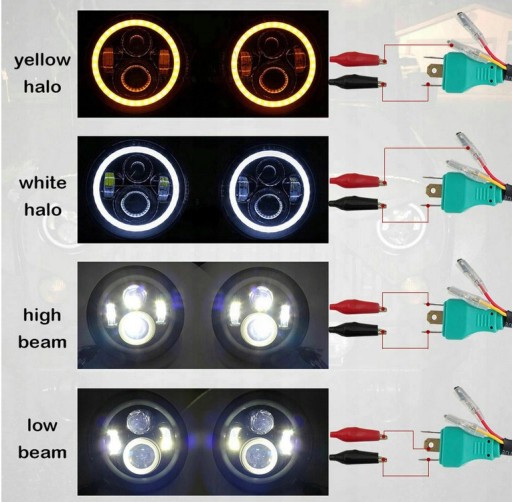 7-calowe reflektory LED są wielofunkcyjne - Halo może być białe lub bursztynowe. Bursztyn jest dla kierunkowskazów; biały jest dla DRL.
