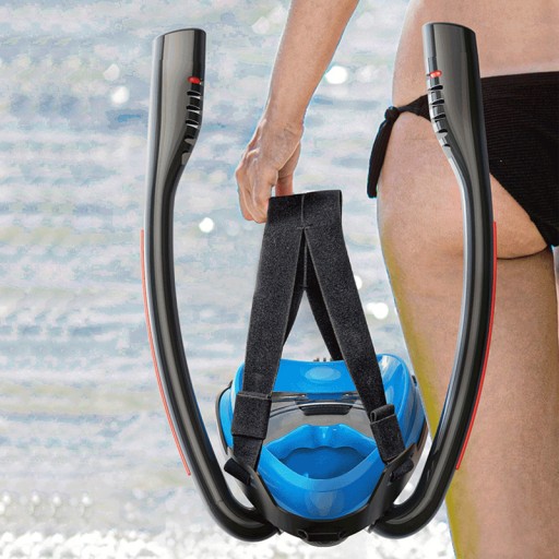 → Dzięki konstrukcji dwóch rurek oddechowej maski. Szybszy przepływ tlenu. Brak blokady oddychania i płynniejsze nurkowanie.