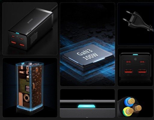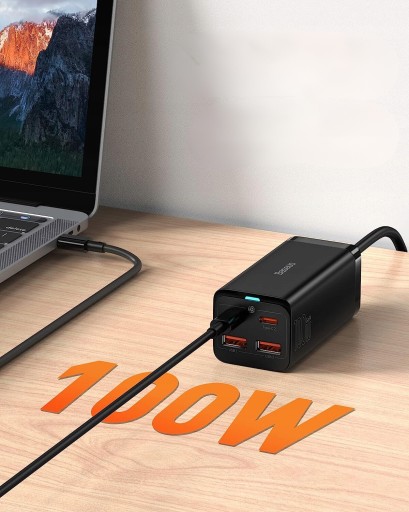 - Nowa ładowarka USB C GaN III: Pożegnaj się ze starymi, nieporęcznymi ładowarkami. Baseus Ładowarka biurkowa o mocy 100 W zapewnia doświadczenie ładowania, którego nigdy wcześniej nie miałeś. Za pomocą tylko jednej ładowarki można szybko naładować telefon, tablet i laptop z portem USB-C.