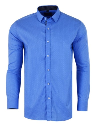 РУБАШКА С УЗОРОМ 40/41, СИНЯЯ, С ДЛИННЫМ РУКАВОМ