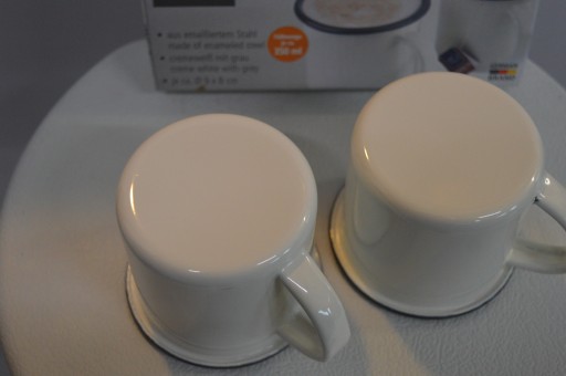 Kubki z uchem zostały wyprodukowane z emaliowanego metalu, co sprawia, że są wyjątkowo wytrzymałe i bardzo trwałe.