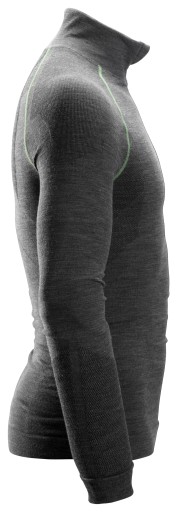 Koszulka wełniana z dużą zawartością wełny merino - najwyższej jakości surowca stosowanego do produkcji odzieży termoaktywnej. Dopasowany fason z wysoką stójką zapinaną na zamek błyskawiczny. Siateczka wentylacyjna pod pachami, dodatkowa warstwa izolacji w obszarze nerek. Koszulka zapewnia komfort termiczny, jest oddychająca, odprowadza pot i wilgoć, a także nie chłonie nieprzyjemnych zapachów. Miły w dotyku materiał, nie podrażnia. Doskonale sprawdzi się jako pierwsza warstwa odzieży w chłodne dni, do mniej intensywnej pracy, a także podczas treningu, trekkingu itp.