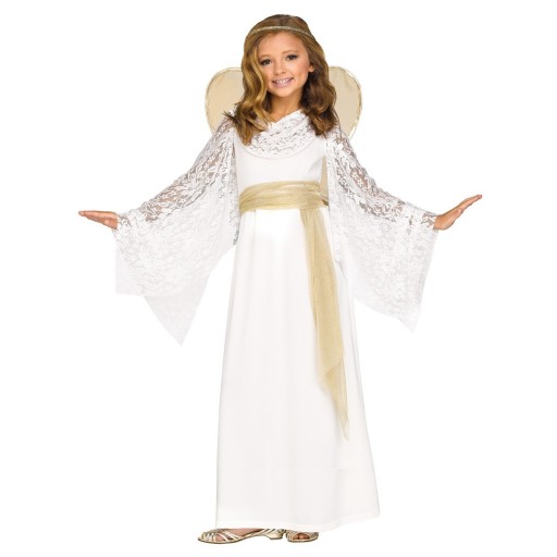 Strój składa się z długiej sukienki, koronkowych nakładek na ręce, skrzydełek, opaski na głowę i paska.