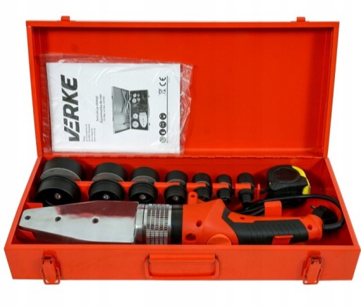 ✔️ W wyposażeniu urządzenia znajdują się aż 7 wymiennych nasadek grzejnych umożliwiając szerokie zastosowanie i które umożliwiają jednoczesne nagrzewanie wewnętrznej i zewnętrznej powierzchni łączonych elementów, oraz inne akcesoria potrzebne do pracy z naszą zgrzewarką.
