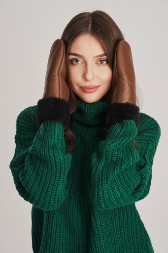Damskie rękawiczki skórzane jednopalczaste wykonane z najwyższej jakości skór jagnięcych. Bardzo ciepłe i wygodne, od środka wykończone naturalnym futerkiem. Rękawiczki w odcieniach ciepłego brązy z jasnym obszyciem.