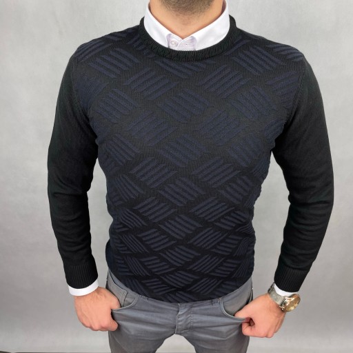 Czarny sweter męski we wzorem delikatny granatowy