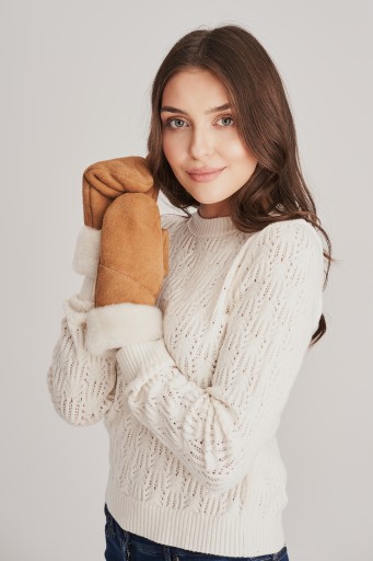 Damskie rękawiczki skórzane jednopalczaste wykonane z najwyższej jakości skór jagnięcych. Bardzo ciepłe i wygodne, od środka wykończone naturalnym futerkiem.