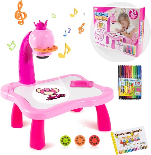 ПРОЕКТОР ДЛЯ ДЕТЕЙ ДЛЯ РИСОВАНИЯ ПРОЕКТОР НА НОЖКАХ, 24 СЛАЙДА, РОЗОВЫЙ НАБОР