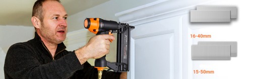 Profesjonalny pneumat o dużej sile wbija gwoździe 50mm oraz zszywki stolarskie o maksymalnej długości 40mm.