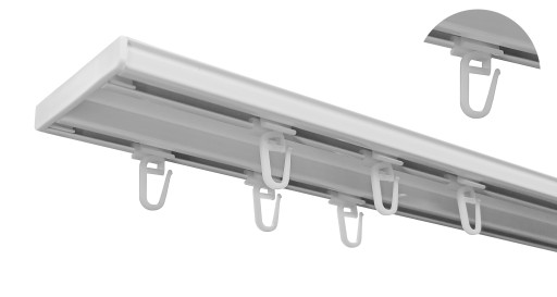 Szyny te są produktem solidnym, a zastosowane w nich elementy są gwarancją cichej pracy systemu podczas przesuwania tkanin, nie wymagają też użycia siły. To wersja premium szyny sufitowej!