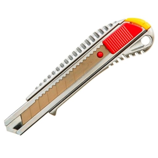 Nóż z ostrzem łamanym TOPEX (nr ref. 17B128) do współpracy z ostrzami o szerokości 18 mm. Bardzo przydatny przy pracach mechanicznych oraz podczas majsterkowania. Metalowa prowadnica i korpus zapewniają długą żywotność. Antypoślizgowa faktura i ergonomiczny kształt sprawiają, że nóż dobrze leży w dłoni, co zapewnia bezpieczeństwo i komfort podczas użytkowania. Marka TOPEX skierowana jest do majsterkowiczów.