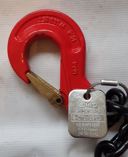 - Łańcuch posiada wybite oznaczenia na hakach oraz załączone tabliczki znamionowe