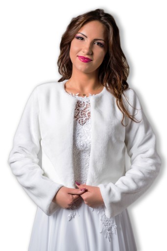 Bolerko ślubne model "Amelia", szyte z futerka sztucznego - imitacja "Misia", w kolorze białym.