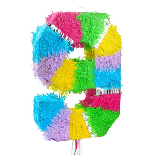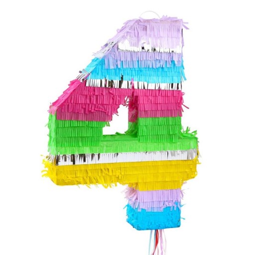 - Oferowana piniata to papierowy pojemnik w kształcie cyfry.