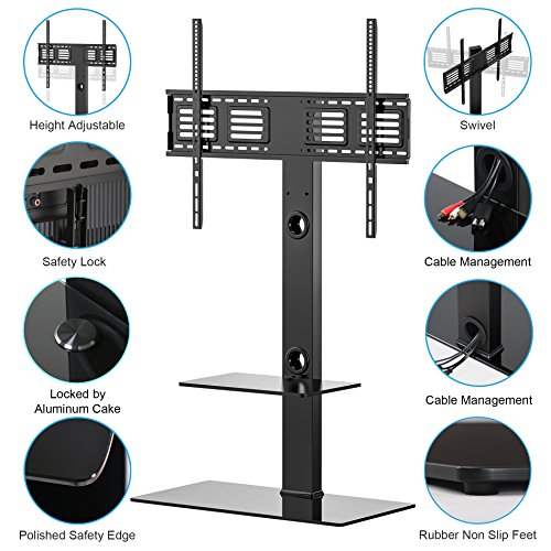 - WIELOFUNKCYJNY - stojak na telewizor można obracać o 70 ° w lewo i w prawo i oferuje 12 poziomów regulacji wysokości w zakresie od 1133 do 1455 mm, co zapewnia optymalne wrażenia wizualne. Zarządzanie kablami z tyłu, aby ukryć niechlujne kable