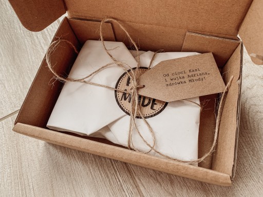 Każde zamówienie pakujemy w bibułę, przewiązujemy sznureczkiem jutowym i wysyłamy w ekologicznym, tekturowym kartoniku.