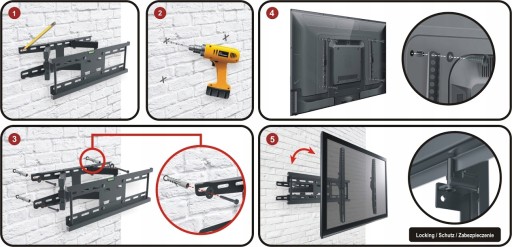 UCHWYT DO TELEWIZORA od 23 - 65'' - Wytrzymałość do 50kg + Poziomica