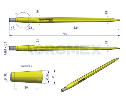 Ząb ładowacza CIĘŻKI uniwersalny prosty L- 780 mm Tur na tuleję W-5791200 W [W9134-780P]
