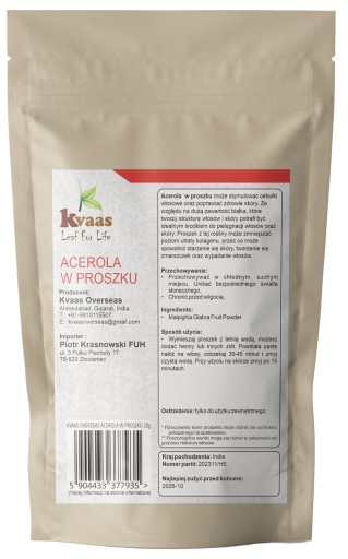 KVAAS ACEROLA W PROSZKU NATURALNA WITAMINA C PROSZEK 20g