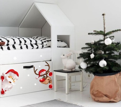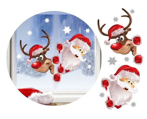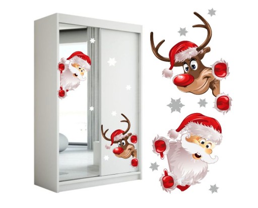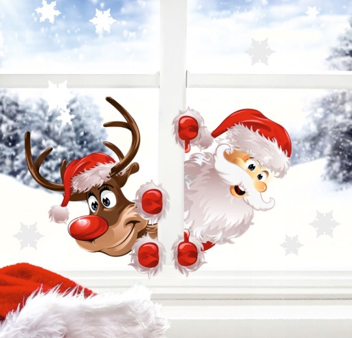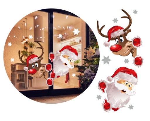Świąteczne naklejki na okno MIKOŁAJ I RENIFER Dekoracje Ozdoby 50x35 Święta
