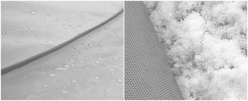 Konstrukcja plandeki pokrowca zapewnia niemalże całkowitą szczelność nawet przy intensywnym deszczu, a jednocześnie przy temperaturze dodatniej otoczenia odprowadza na zewnątrz wilgoć gromadzącą się pod pokrowcem..