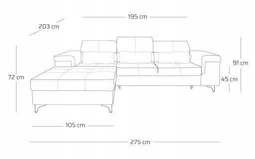 • Wysokość (rozłożone zagłówki): 91 cm