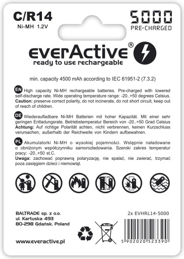 CECHY PRODUKTU Akumulatory everActive R14 C Ni-MH 5000 mAh ready to use