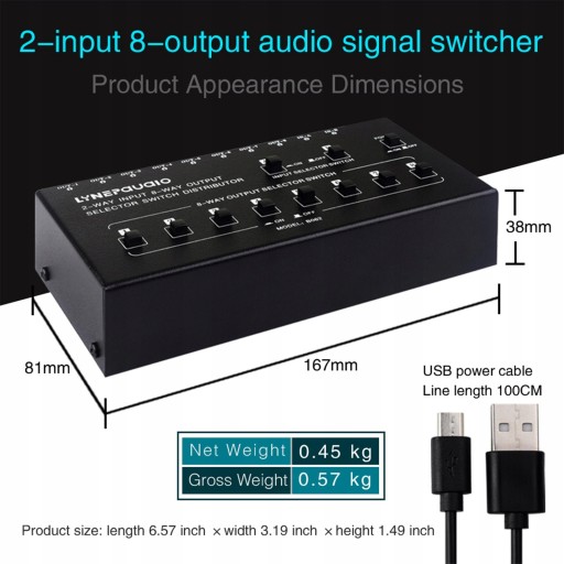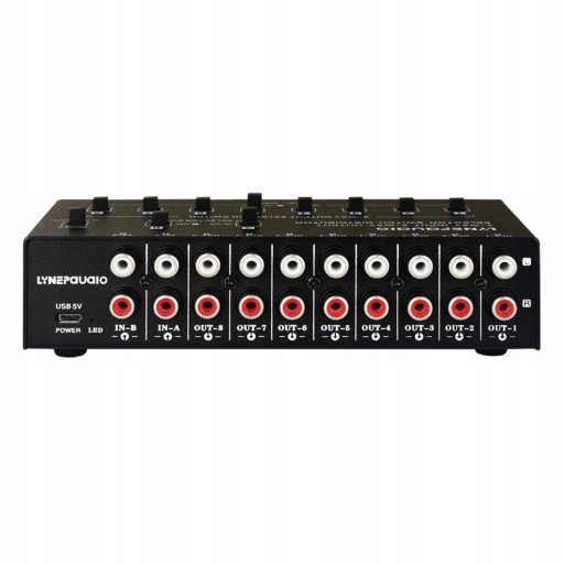 8-kanałowy przełącznik wyboru sygnału audio rozwiązuje skomplikowane podłączanie i odłączanie linii, które jednolicie łączy źródła sygnału wejściowego urządzenia z przełącznikiem w celu łatwego wyboru Użyj standardowego portu RCA