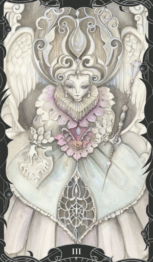 Zakrzywione, faliste linie, elegancka srebrna paleta, tańczące stworzenia przypominające wróżki w dziwnej scenerii Tima Burtona: wyjątkowa i tajemnicza atmosfera tarota Enchanted Garden inspiruje ciekawość i roztacza w tobie magię.
