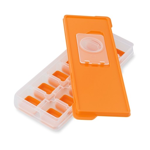 Element 5: pojemnik na kostki lodu z pokrywką, - wymiary: 26 x 9 x 3,5 cm, - wymiary pojedynczej komory: 2,5 x 2,5 x 2 cm