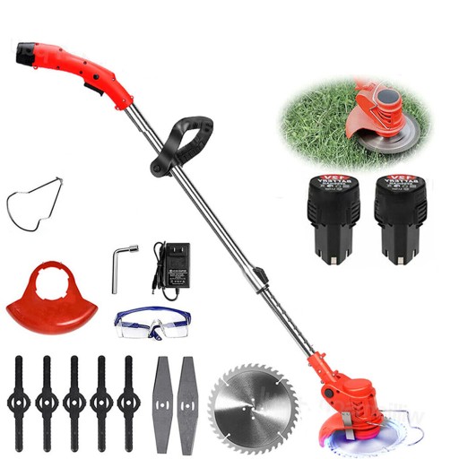 - 18000rpm prędkości jałowej, kosiarka jest wyposażona w 12V akumulator litowo-jonowy, 2 baterie są używane w sposób ciągły.