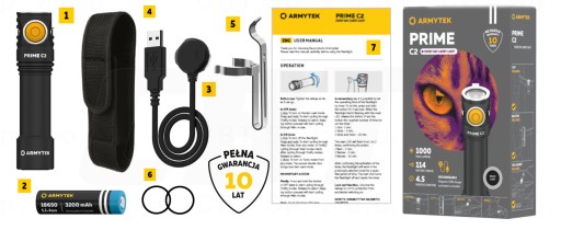1️⃣ Latarka Prime C2 światło ciepłe żółte