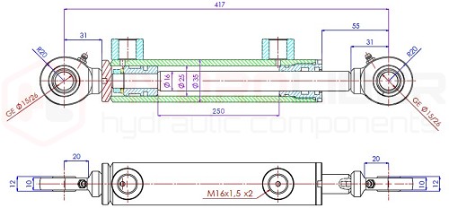 МАЛЫЙ ГИДРАВЛИЧЕСКИЙ ЦИЛИНДР 25/16 ХОД 250 мм