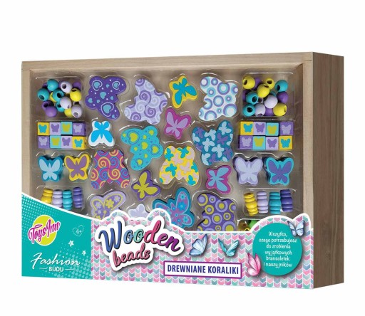 Zaprojektuj i wykonaj własnoręcznie oryginalną drewnianą biżuterię. W zestawie znajduje się około 100 szt. drewnianych koralików o różnych kształtach i wielkości, 10 drewnianych dużych motyli, 14 drewnianych małych kwiatów, około 6 m gumki. Całość zapakowana jest w drewniane pudełeczko. Wiek +4.