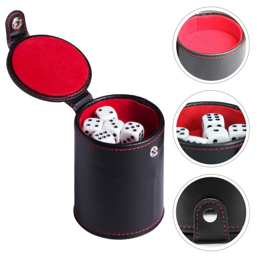 ZESTAW DO GRY W KOŚCI KUBEK POJEMNIK 5 KOSTKI PROFESJONALNE NA IMPREZĘ
