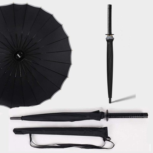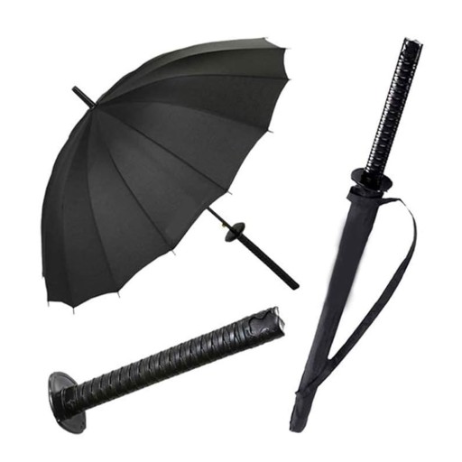 Chcesz wyróżnić się na ulicy nietypowym gadżetem? Z tym parasolem to możliwe – mało kto przechodzi obok niego obojętnie. Ten parasol to także świetny pomysł na prezent. Obdarowana osoba jest z początku wielce zaskoczona, później jednak nie może doczekać się deszczowych dni, by pochwalić się swoim samurajskim parasolem.