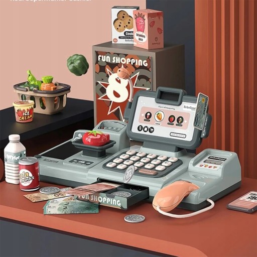 ❇️ KASA Z DŹWIĘKIEM ❇️ W ZESTAWIE KOSZYK I AKCESORIA ❇️ INTERAKTYWNY SKANER ARTYKUŁÓW ❇️ TERMINAL KART PŁATNICZYCH ❇️ MOŻNA PŁACIĆ TELEFONEM ❇️ MIKROFON Z GŁOŚNIKIEM ❇️ BANKNOTY, MONETY I KARTA PŁATNICZA ❇️