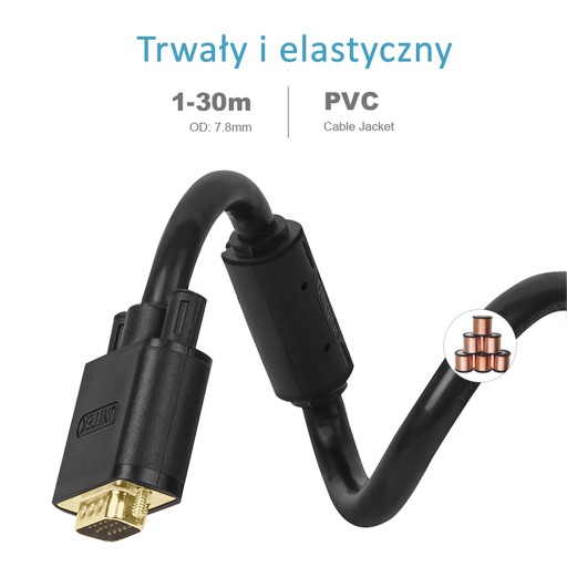 Vga Unitek cables are made from 100% copper, have gold-plated connectors and are characterised by the highest parameters. Built-in ferrite fuses protect against EMI, RFI and other interference and stabilise the signal transmission. The individual rays are repeatedly shielded with metal and aluminium foil so that the image is clean, clear and distortion-free. Vga Unitek cable can create a full HD image with a max. 1920 x 1080p resolution. The following cable lengths are available in our assortment: 0. 5 m, 1 m, 1 m. 5 m, 2 m, 3 m, 5 m, 8 m, 10 m, 15 m, 20 m, 25 m and 30 m, depending on the cable length, cables are made with parameters 26-28 AWG. The cables are thin, flexible but very durable. They are compatible with all devices equipped with a VGA port. Unitek also takes care of the functional aspects of the delivered goods. Wires are supplied in an aesthetic thread packaging and larger lengths in a cardboard box. Each cable is attached with a band to better control the organisation of its flow. The cable ends are protected with a dust cap. And all this so that the cable will last for many years.