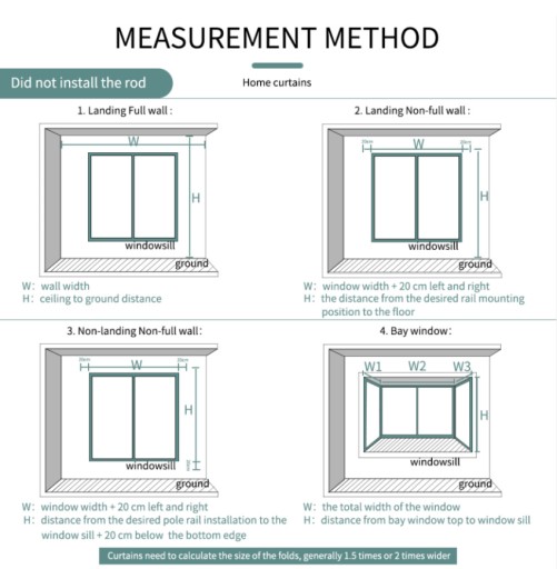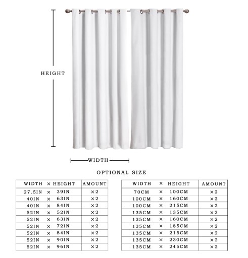 2-częściowe zasłony, każdy rozmiar reprezentuje całkowitą szerokość.