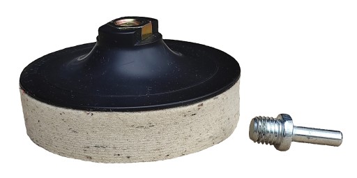 Filc polerski na dysku polerskim o średnicy 100 mm i grubości filcu 25 mm, przeznaczony do polerowania: