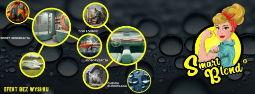 Dodatkowym atutem SMARTBLOND® Czernidło - opony jest jego hydrofobowa formuła. Oznacza to, że po zastosowaniu tego produktu na opony, będą one odpychać wodę i inne płyny, co przyczyni się do utrzymania ich czystości na dłużej. Brud i inne zanieczyszczenia nie będą miały szansy osadzić się na powierzchni opony, co ułatwi utrzymanie ich w czystości i sprawi, że będą wyglądać zawsze świetnie.